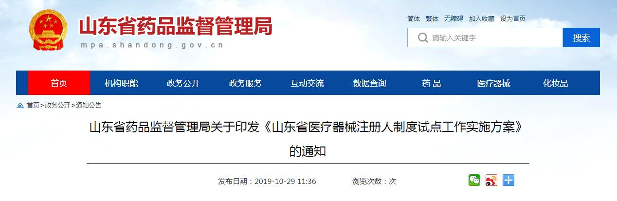 第二批试点医疗器械注册人省份单位中,仅剩辽宁省暂未发布实施方案或征求意见稿。为满足山东省内各医疗器械企业需求,山东省药监局在结合国家药监局要求和省内医疗器械企业情况,制定了符合山东省现实情况的试点工作实施方案。