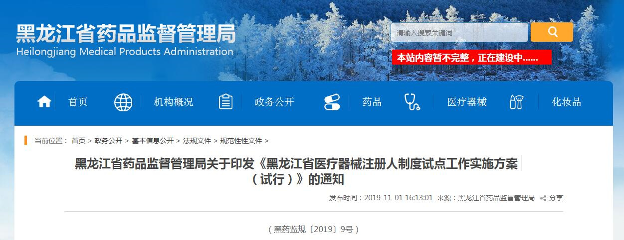为落实国务院关于供给侧结构性改革总体部署,加快推进我省医疗器械产业创新发展,为全国实施医疗器械注册人制度积累经验,根据《中共中央办公厅国务院办公厅印发关于深化审评审批制度改革鼓励药品医疗器械创新的意见》(厅字〔2017〕42号)《国家药监局关于扩大医疗器械注册人制度试点工作的通知》(国药监械注〔2019〕33号)要求,结合我省实际,我局制定了《黑龙江省医疗器械注册人制度试点工作实施方案》,现印发给你们,请认真组织实施。