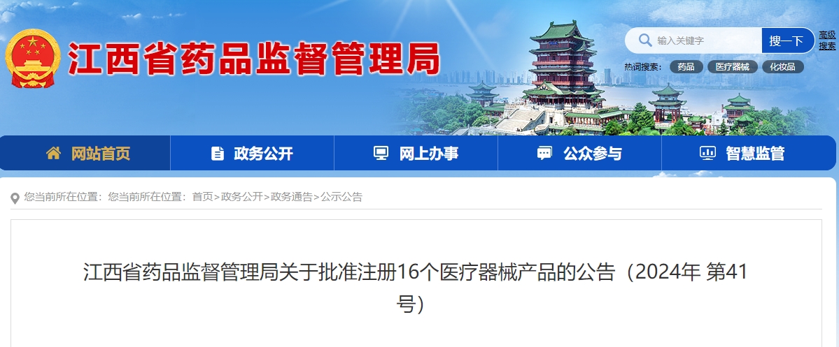 2024年8月,江西省药品监督管理局共批准注册境内第二类医疗器械产品16个(具体产品见附件)。 特此公告。 附件:2024年8月批准注册医疗器械产品目录.pdf 江西省药品