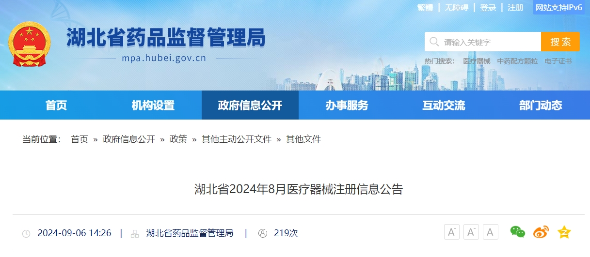 根据《医疗器械注册与备案管理办法》、《体外诊断试剂注册与备案管理办法》相关规定,2024年8月湖北省药品监督管理局共批准注册医疗器械产品36个。 特此公告。 附