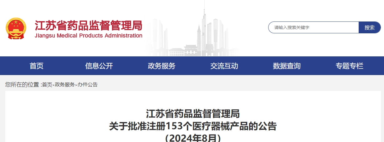 2024年8月,江苏省药品监督管理局共批准注册第二类医疗器械产品153个(具体产品见附件)。 特此公告。 附件:2024年8月批准注册第二类医疗器械产品目录、技术审评报告