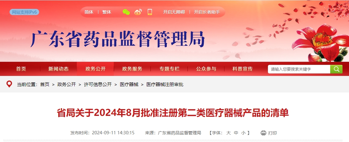 2024年8月,广东省药品监督管理局共批准注册第二类医疗器械产品280个,其中首次注册138个,延续注册142个(具体产品见附件)。 特此公告。 附件:2024年8月批准注册第二类