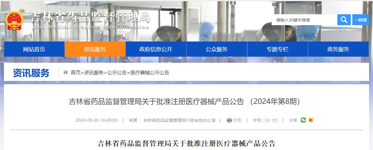 2024年8月,吉林省药品监督管理局共批准注册第二类医疗器械产品114个。(具体产品见附件) 附件:2024年8月批准注册第二类医疗器械产品目录 吉林省药品监督管理局 2