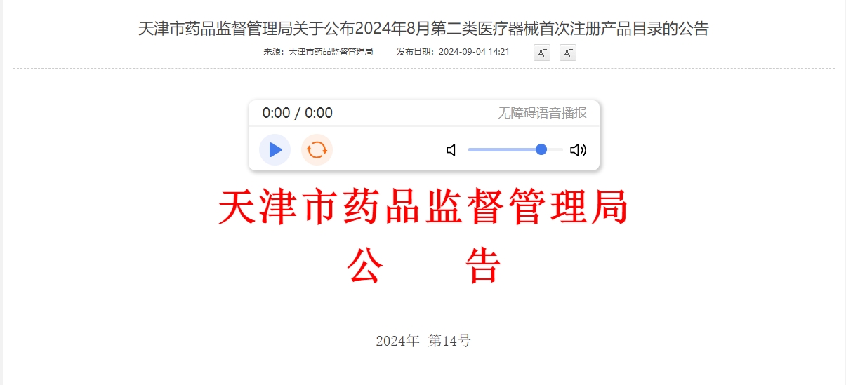 2024年8月,安徽省药品监督管理局共批准首次注册第二类医疗器械产品 24 个,产品相关信息见附件。 特此公告。 附件:安徽省第二类医疗器械首次注册产品目录(2024年8