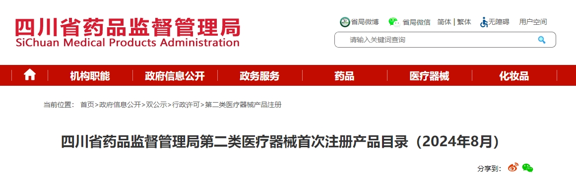 四川省药品监督管理局2024年8月第二类医疗器械首次注册产品目录 注册证编号 产品类型 产品类别 产品名称 注册人名称 统一社会信用代码 批准日期