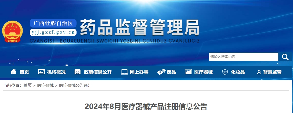 根据《医疗器械注册与备案管理办法》和《体外诊断试剂注册与备案管理办法》的要求,现将广西壮族自治区2024年8月第二类医疗器械产品注册相关信息予以公告。 文件下载: