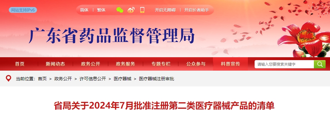 2024年7月,广东省药品监督管理局共批准注册第二类医疗器械产品293个,其中首次注册156个,延续注册137个(具体产品见附件)。 特此公告。 附件:2024年7月批准注册第二类