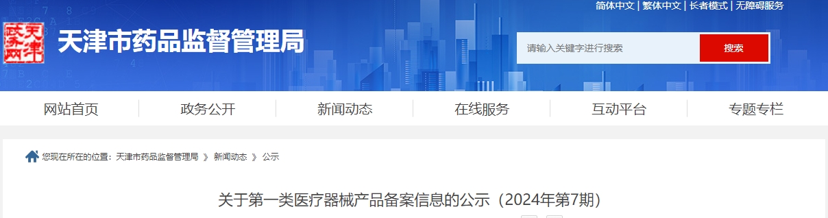关于第一类医疗器械产品备案信息的公示(2024年第7期) 根据《医疗器械监督管理条例》、《医疗器械注册与备案办法》和《关于第一类医疗器械备案有关事项的公告(第62号