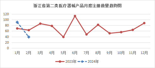 2024年2月,浙江省药品监督管理局共批准注册第二类医疗器械产品39个,其中有源类15个,无源类12个,体外诊断试剂12个(具体产品见附件)。按照注册申请人所在辖区分析,批准注册的